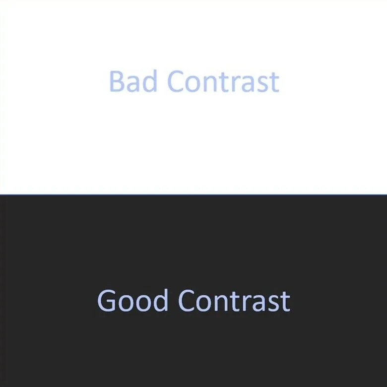Most elearning designs seem to get this one right (perhaps because it’s important even for folks who don’t have visual impairments). Put simply, we need high contrast between text/assets and the background.